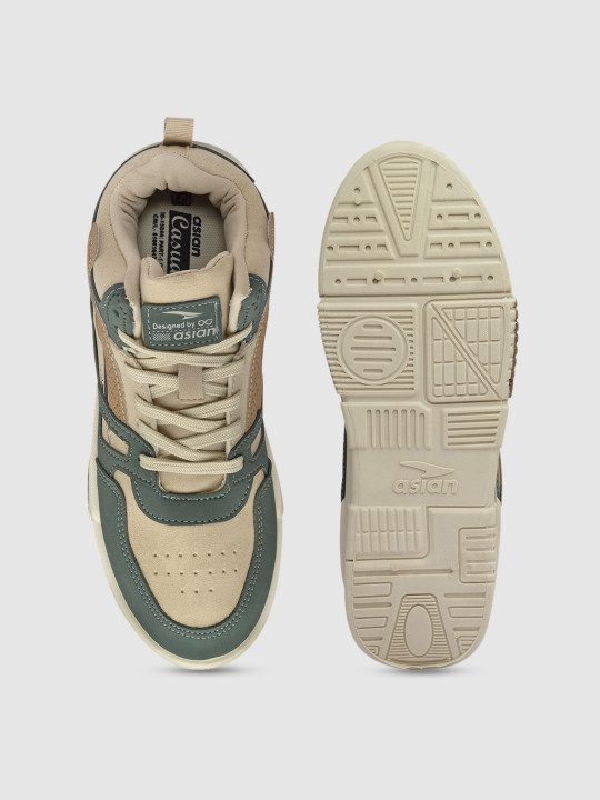 Men Colourblocked Round Toe Mid-Top Sneakers