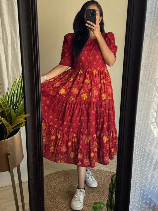 Floral Embroidered Thread Work Pure Cotton Kurti