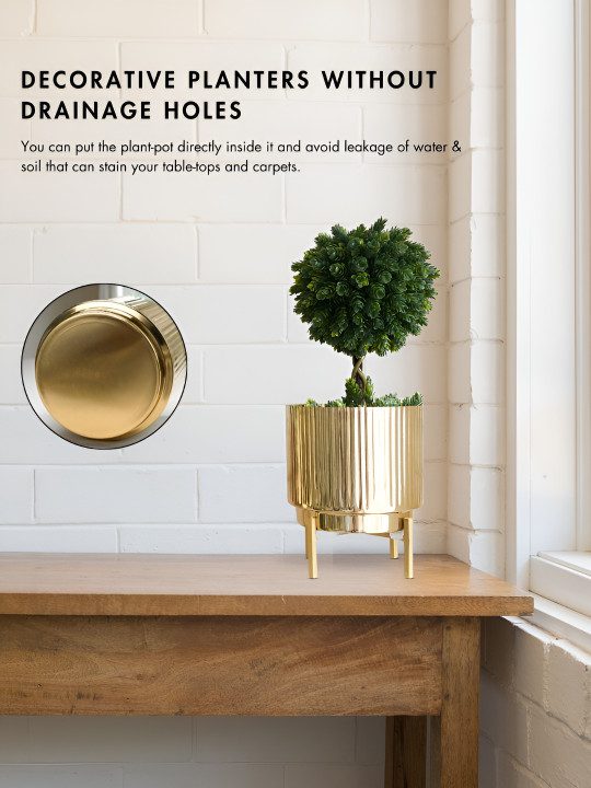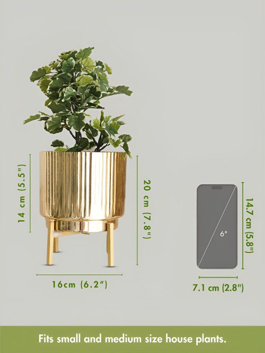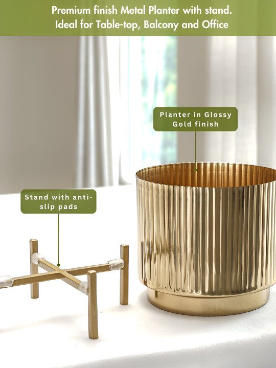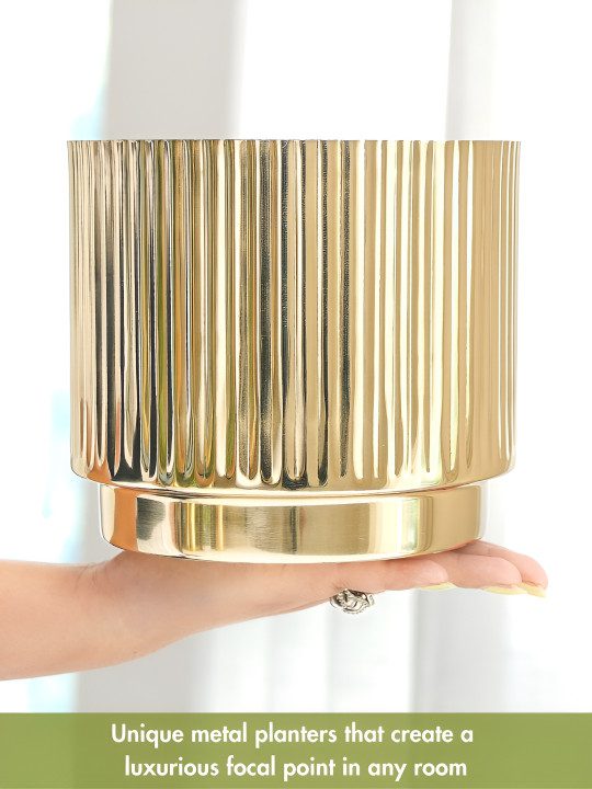 Set Content: Planter with stand Color: Gold-toned Pattern: Textured Pot Material: metal