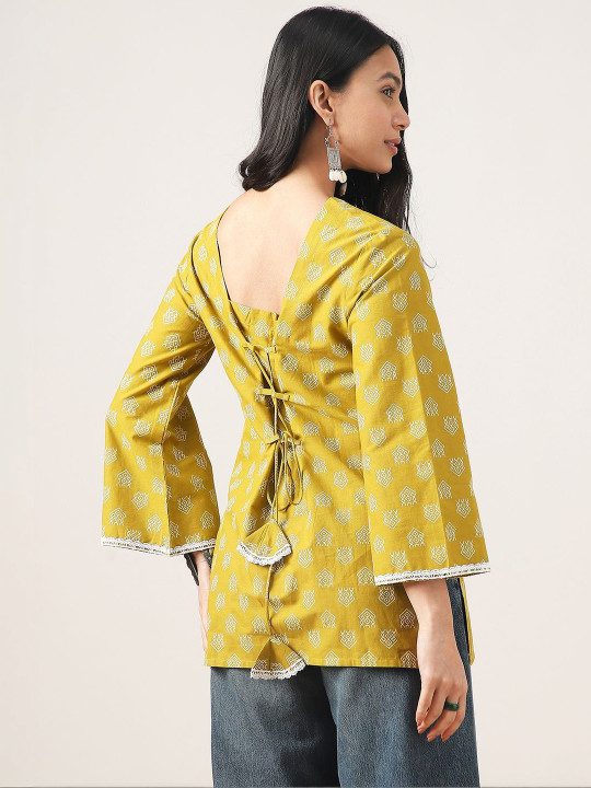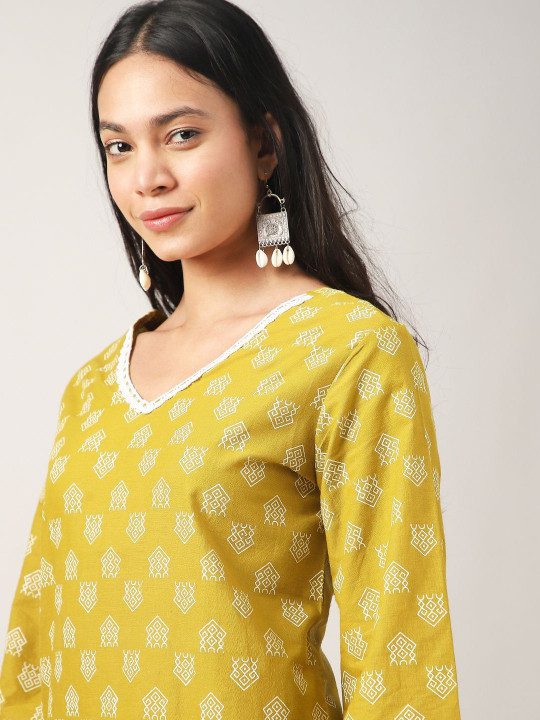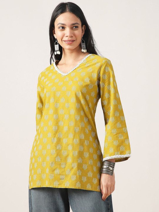 Ethnic Motifs Printed V-Neck Pure Cotton Kurti