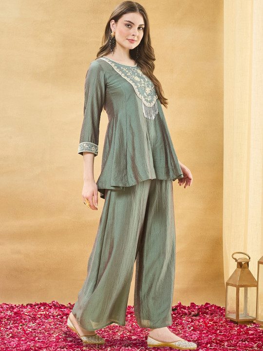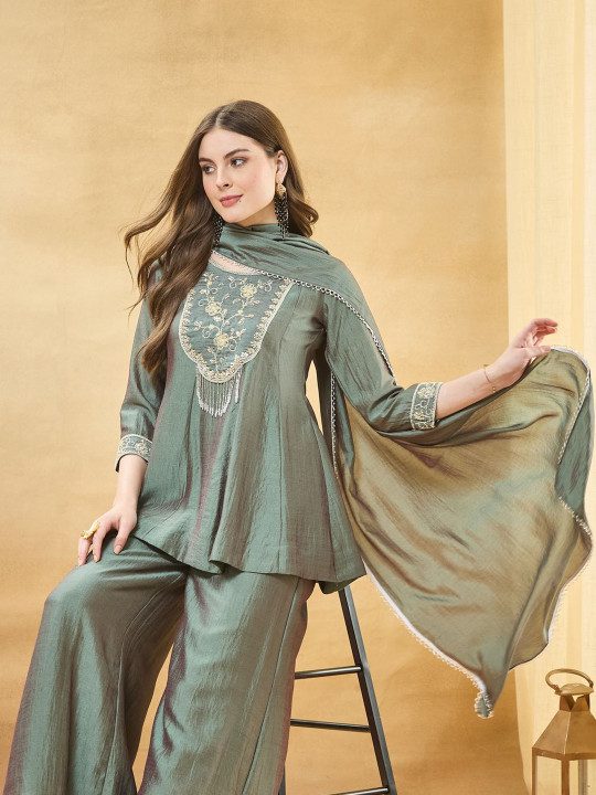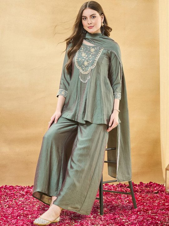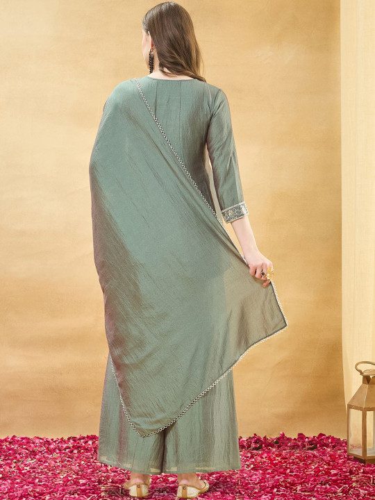 Sea Green Embroidered Kurta with Palazzos With Dupatta