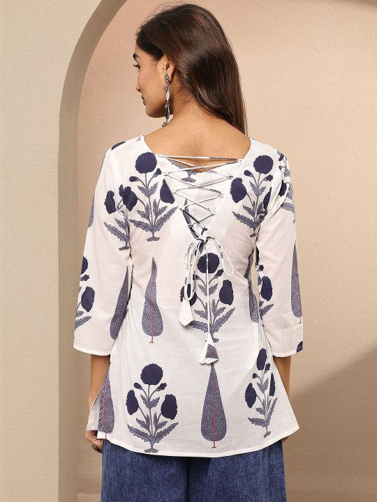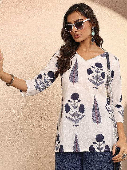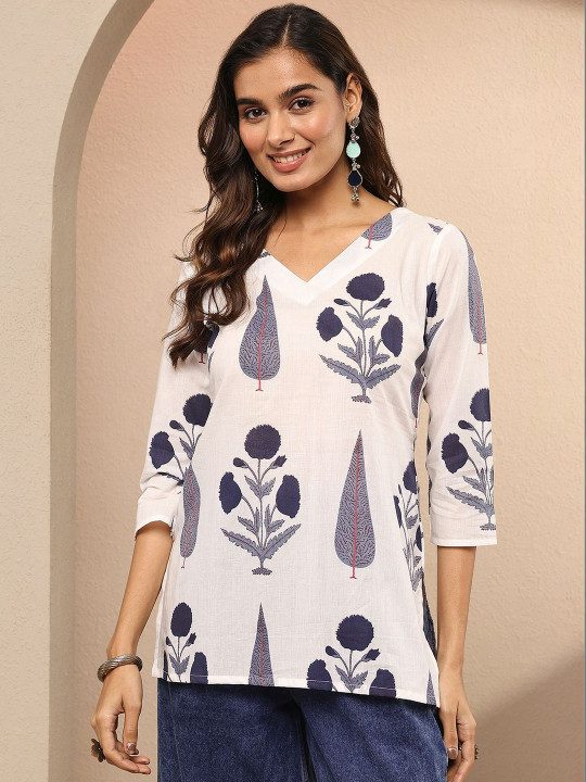 Ethnic Motifs Printed V-Neck Pure Cotton Kurti