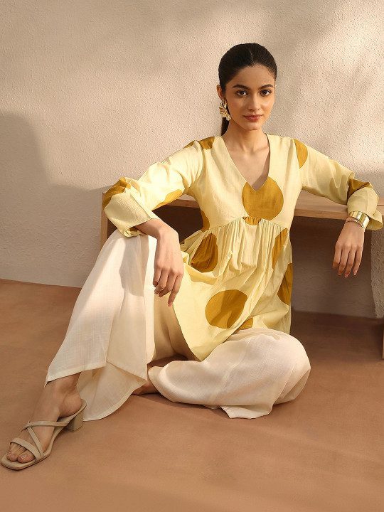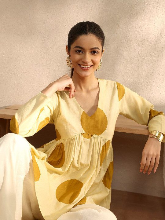 Polka Dot Printed V-Neck Empire Kurti