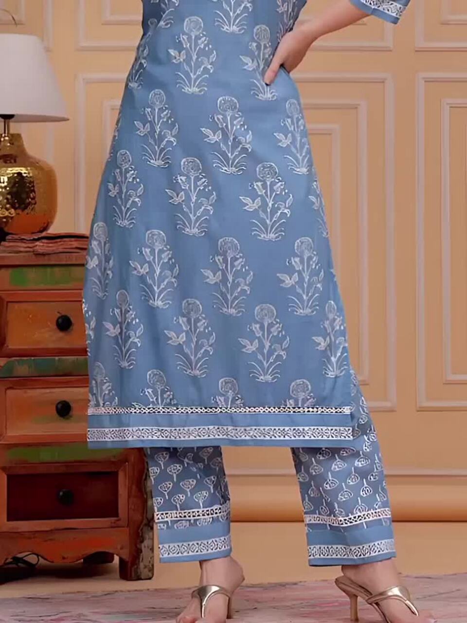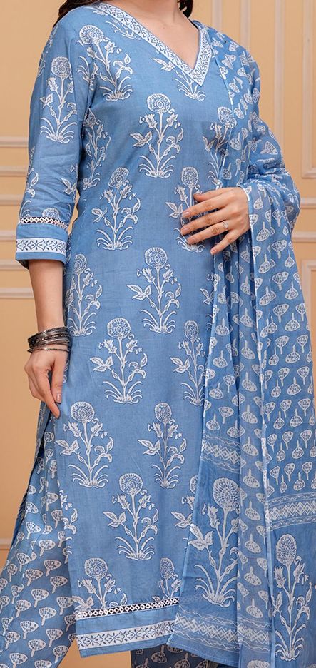 Blue printed Kurta with Trousers with dupatta