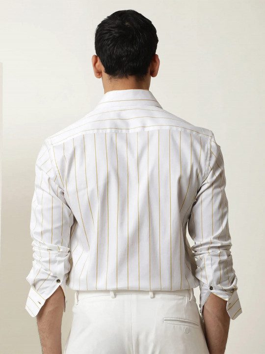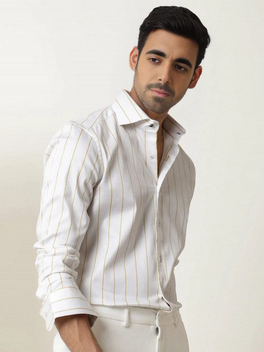 Classic Striped Cotton Spread Collar Curved Formal Shirt