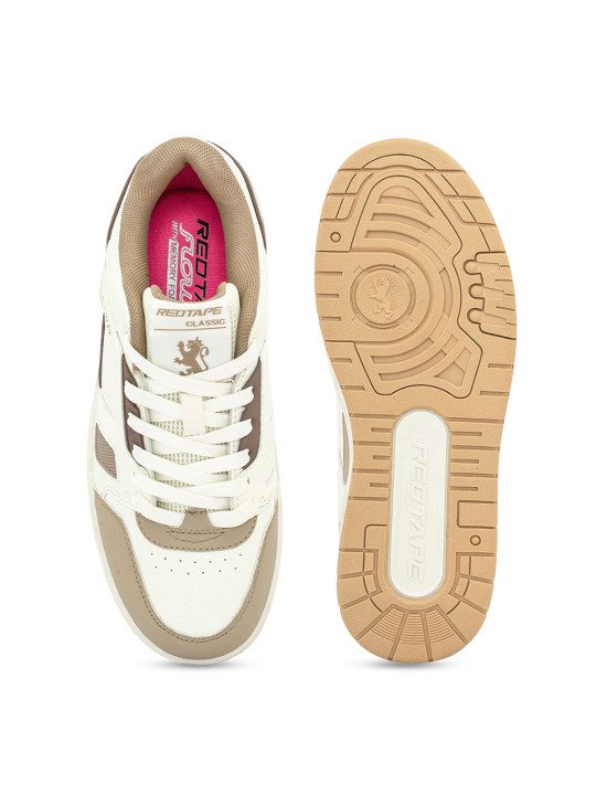 A pair of round toe white sneakers ,has regular styling, Lace-ups detail Mesh upper Cushioned footbed Textured and patterned outsole Warranty: 45 days