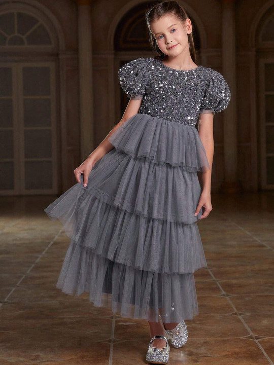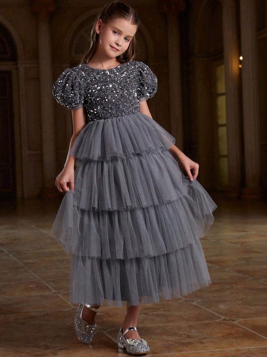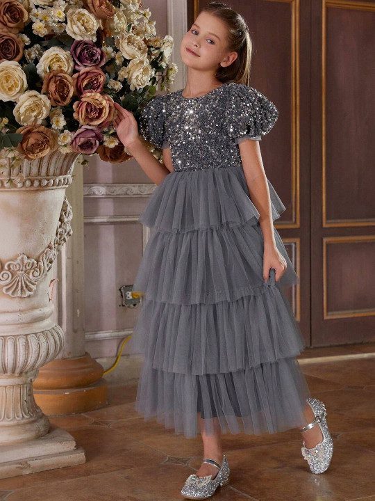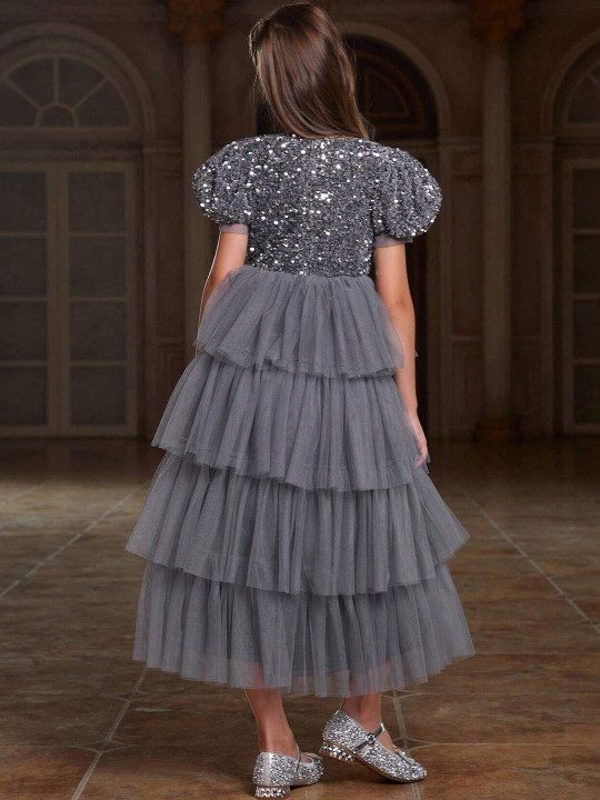 Flutter Sleeve Net Puff Sleeves Fit & Flare Dress