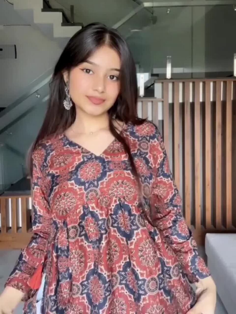 Brown and red straight kurti